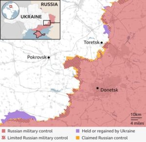تحلیلگران نظامی میگویند در نبرد بر سر شهر پوکروفسک، اوکراینیها باید به سختی برای حفظ شهر تلاش کنند. این شهر به یک پادگان نظامی در طول جنگ تبدیل شد و بسیاری از نظامیان اوکراینی برای استراحت و یا آمادهشدن برای عملیاتهای آینده، به پوکروفسک میآمدند.